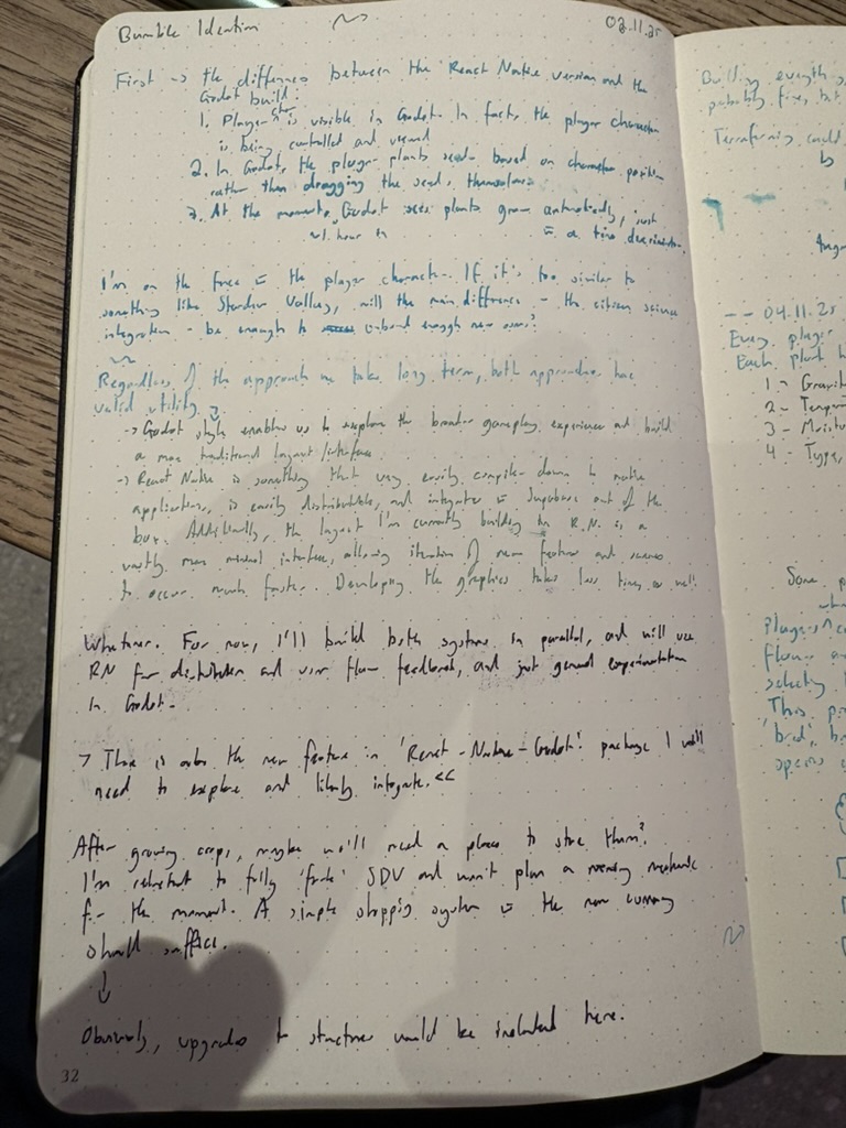 Hmm…after thinking about this a little bit, I actually am already super bored/over this and just want to move on to building the games. Might need to define a sprint plan for this week’s work on Bumble but I just want to move on for a little while. Probably putting together a Kanban board would be ideal, now. The planet painting feature is something that I really want to work on, but I think it’s going to need a big revamp and for that to happen, it needs to be part of a different project. I think I’m going to focus on smooth animations and vibrant colours - like the Voidpet watering & growth scenes.
